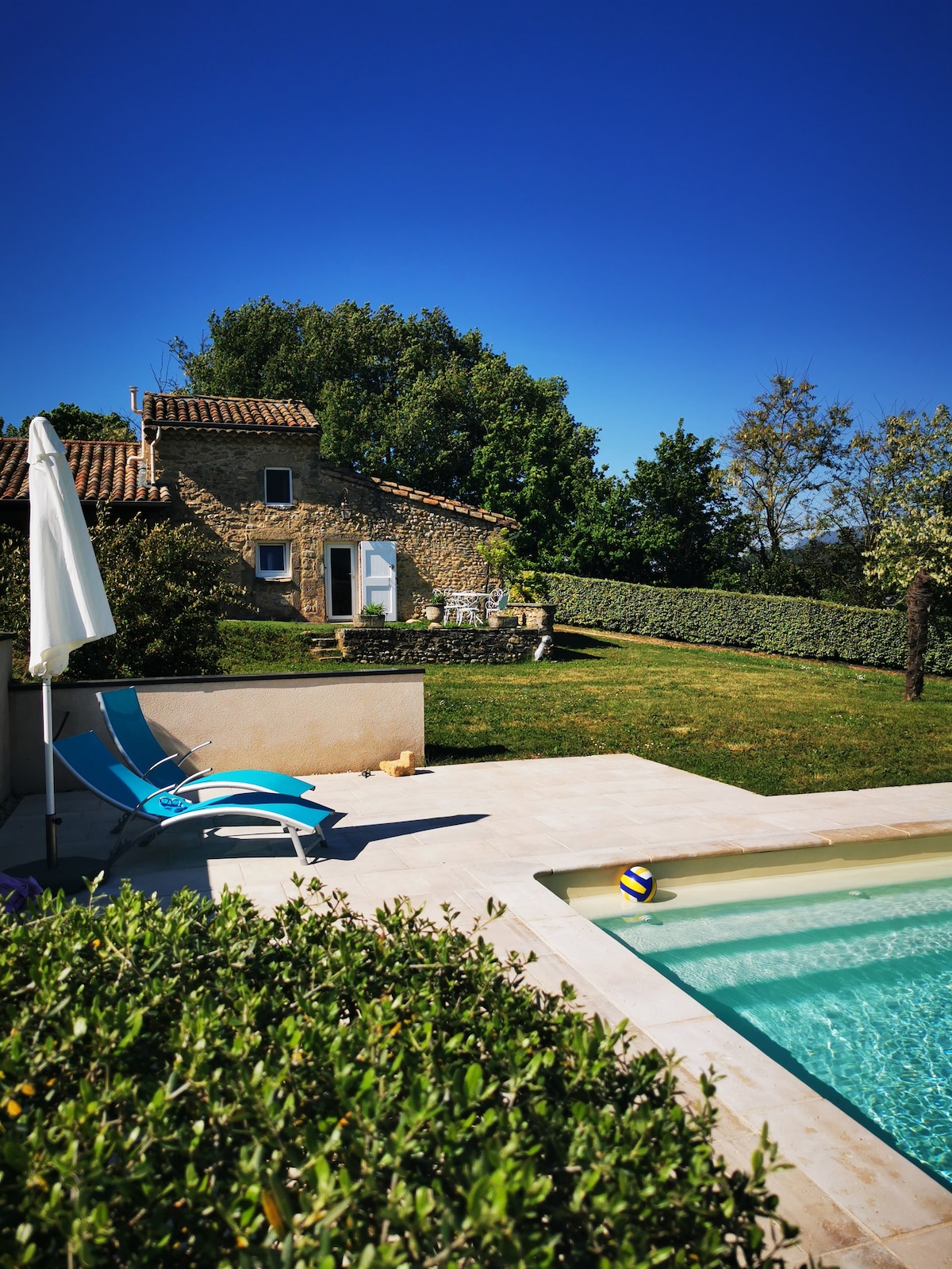 Nella Drôme provenzale, ai margini dell'incantevole villaggio di Puy Saint Martin "Chez Charles" vi dà il benvenuto. Elegante casa indipendente con piscina privata e riscaldata, vista mozzafiato sulla valle. Avrete una cucina attrezzata, una zona soggiorno, una zona salotto con vista, al piano superiore una suite matrimoniale, doccia XL, letto 160, camera standard con doccia e 2 letti singoli. Splendida terrazza in legno intorno alla piscina, zona pranzo sotto l'ombrellone, zona soggiorno, sdraio e barbecue.
