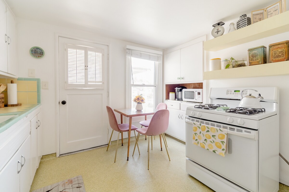 Goditi questo alloggio con 1 letto. Una camera da letto accogliente e luminosa con un comodo letto matrimoniale. Il soggiorno è composto da una zona pranzo dedicata e da una zona relax con divano e TV. L'angolo cottura include un forno a microonde, un piccolo forno e una macchina per il caffè K-Cup, ma non un piano cottura. Riscaldamento e condizionatore appena installati. Questa suite fa parte di una casa unifamiliare. Anche il resto della casa è affittato come unità Airbnb, ma con ingresso indipendente. La zona del patio è condivisa. L'ingresso è nel cortile sul retro.