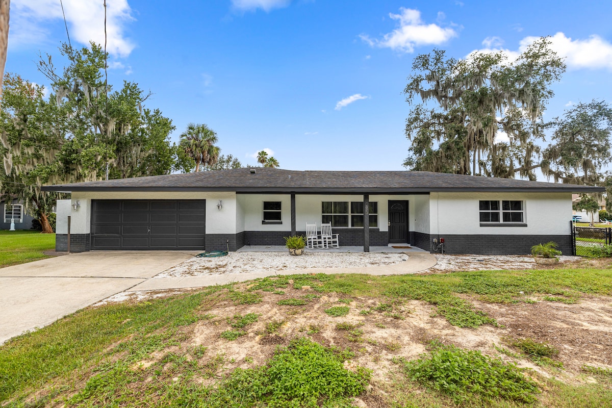 ☀Tramonti mozzafiato sul lago Rousseau ☀Goditi il lago scintillante, i suoni della natura e una vista mozzafiato dal portico, dal molo o dal focolare esterno ☀Attività: OK! Magari qualche gioco di corn hole o di calcio sul prato ben curato, se non sei troppo ipnotizzato dal sole che si riflette sull'acqua, dagli uccelli che atterrano sul lago o dai numerosi alberi di quercia viva di 300 anni con muschio spagnolo che offrono ombra e luce solare ☀Griglia e poi termina la giornata con il tramonto, suoni rilassanti e s'mores sul tuo falò