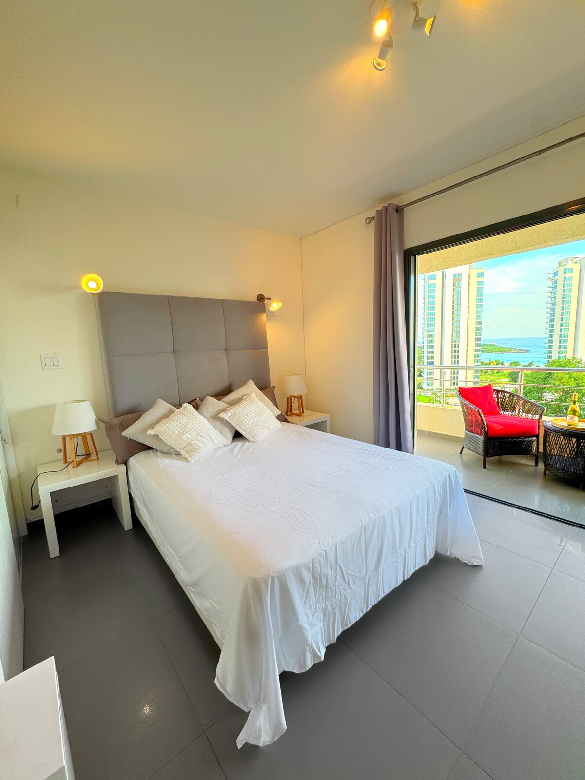 Situato al 6° piano del Blue Mall a Cupecoy, il Blue 614 è un rifugio luminoso e moderno con 2 camere da letto, soggiorno open space e terrazza privata con vista sul tramonto. Arriva con facilità tramite ascensore e ingresso con chiave elettronica alla reception con personale; garage e parcheggio in loco disponibili. A pochi minuti dalle spiagge di Mullet Bay e Cupecoy, dai ristoranti di Maho e dal confine francese. Ideale per coppie, amici o viaggiatori d'affari che cercano panorami, comfort e comodità.