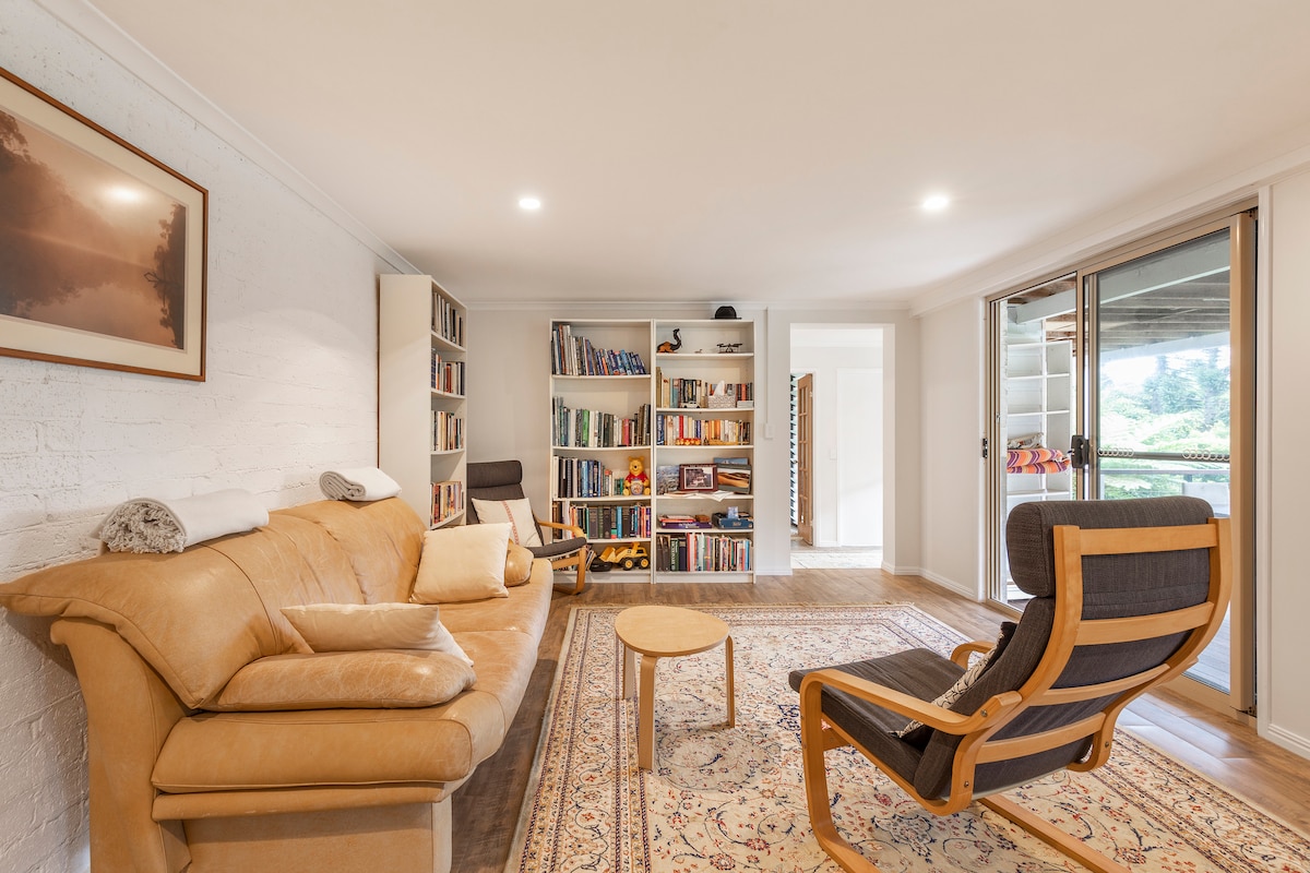 Sono felice di accogliere una vasta gamma di ospiti nella suite privata e indipendente con camera da letto, soggiorno/sala da pranzo separato e angolo cottura. Questo spazio tranquillo, confortevole e ben attrezzato, con veranda privata e splendida vista sul giardino e sulla foresta, è una delizia per persone di tutti i sessi e nazionalità in cui rilassarsi. Offro uno spazio per soli adulti.
