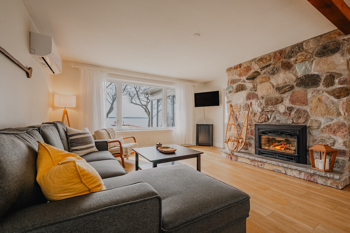 Stunning cottage stilted on St-Lawrence River. 50 mins to bustling Montreal. Superb sunsets and river views on 3 sides. Radiant floors, chef's kitchen, high-end furniture & appliances. Upstairs master suite with terrace, overlooking River. In/outdoor fireplaces & firewood with wood. High spd internet. Sauna, large terrace & garden, 5 car parking. Canoe, kayak, 2 bicycles. Skiing, hiking, golf, pickleball, cycling. 4km to charming St-Anicet village. A gem.