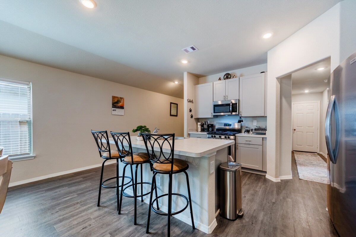 Rilassati e ricaricati in questa casa di nuova costruzione, moderna ed elegante. Situata nel cuore del centro di Conroe. Estremamente vicino a ottimi ristoranti, intrattenimento e al centro congressi di Conroe. A circa 15 minuti dal lago Conroe, questa vacanza sarà indimenticabile! Goditi un film sul tetto sotto le stelle o crea ricordi intorno al braciere all'aperto nel cortile sul retro. Mettiti comodo davanti al televisore da 75 pollici. Con televisori in ogni stanza, goditi una notte di riposo tranquillo su letti confortevoli.