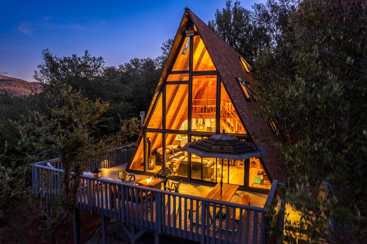 Mid-Century Modern A-Frame Secluded with Hot Tub
