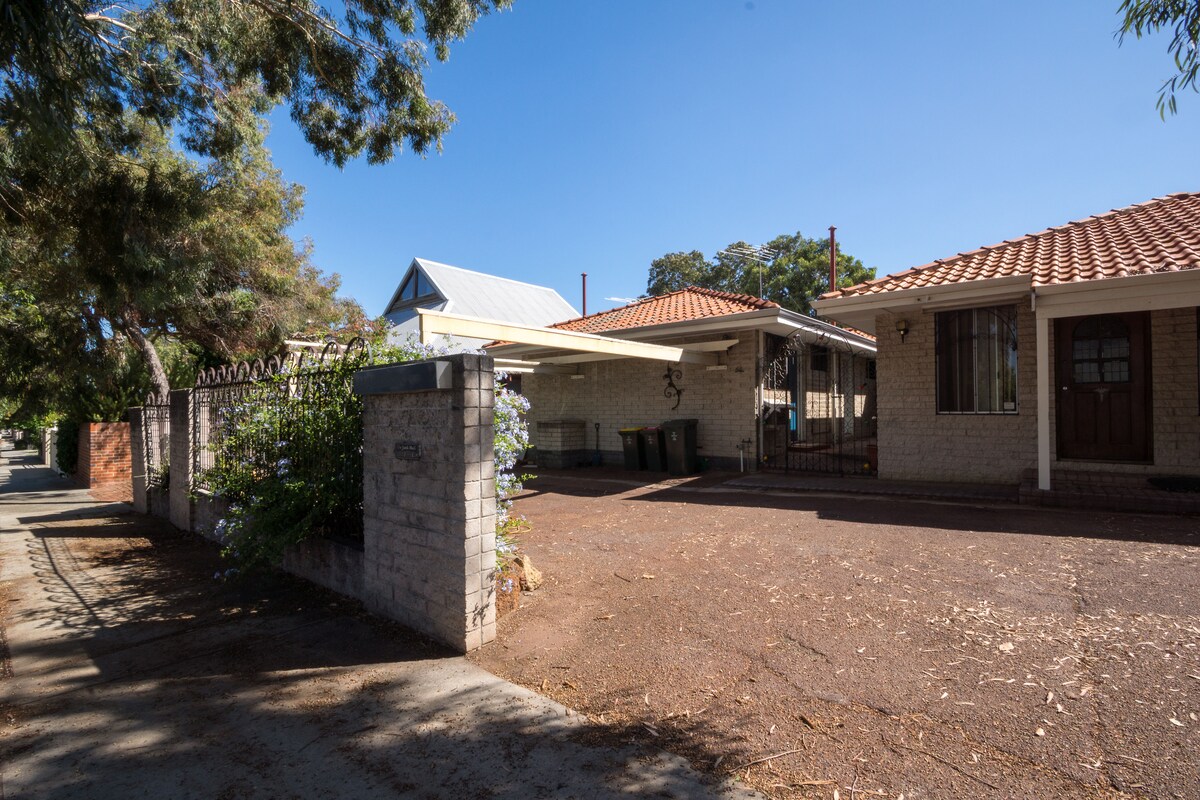 La nostra spaziosa Guestsuite, risalente a 100 anni fa, si trova a pochi passi dall'UWA, dal Perth Children's Hospital, dal Sir Charles Gairdner e dall'Hollywood Hospital. Si compone di un ampio soggiorno che si collega a una spaziosa camera da letto con un grande bagno appena ristrutturato. L'accesso avviene tramite un ingresso privato nella parte anteriore della nostra casa. Viviamo sul retro della casa, quindi siamo prontamente disponibili in loco per soddisfare le vostre esigenze. Ti ricordiamo che non è presente una lavatrice o un servizio di cucina. Di recente abbiamo installato un'aria condizionata!