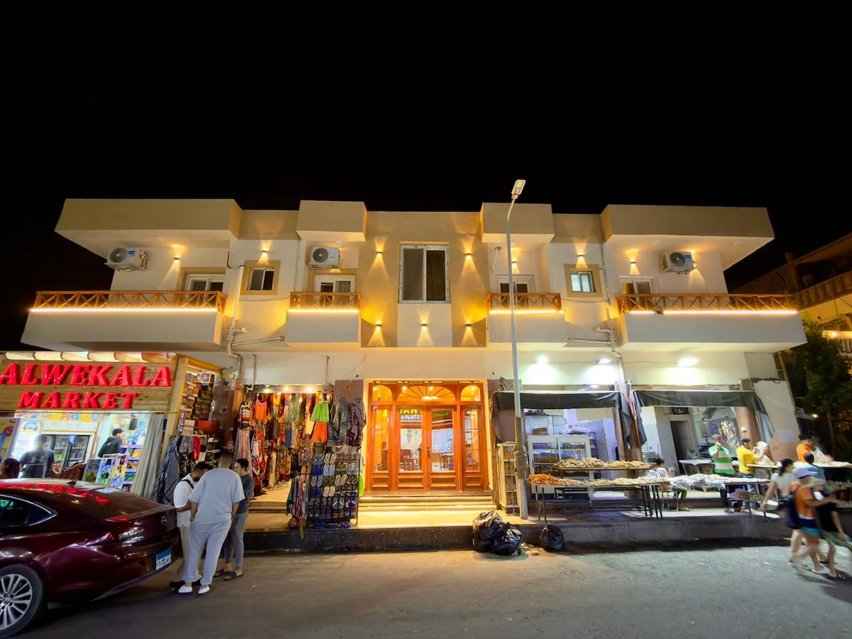Benvenuti nel nostro esclusivo hotel in stile residence, dove il lusso incontra il comfort, le nostre camere splendidamente progettate, e spaziosi appartamenti con una camera da letto, pulizia impeccabile, a soli tre minuti dal mare e dal centro, servizio di prim 'ordine e personale cordiale dedicato, per rendere il vostro soggiorno eccezionale, rilassarsi su una vasca idromassaggio sul tetto, godere di un set beduino tradizionale con una splendida vista sul mare sul tetto, biciclette gratuite e servizio lavanderia, un wifi eccellente per garantire un soggiorno il più confortevole possibile