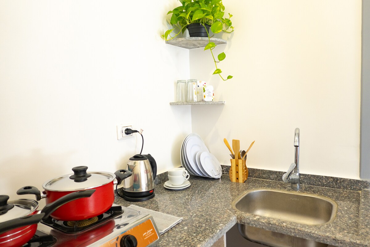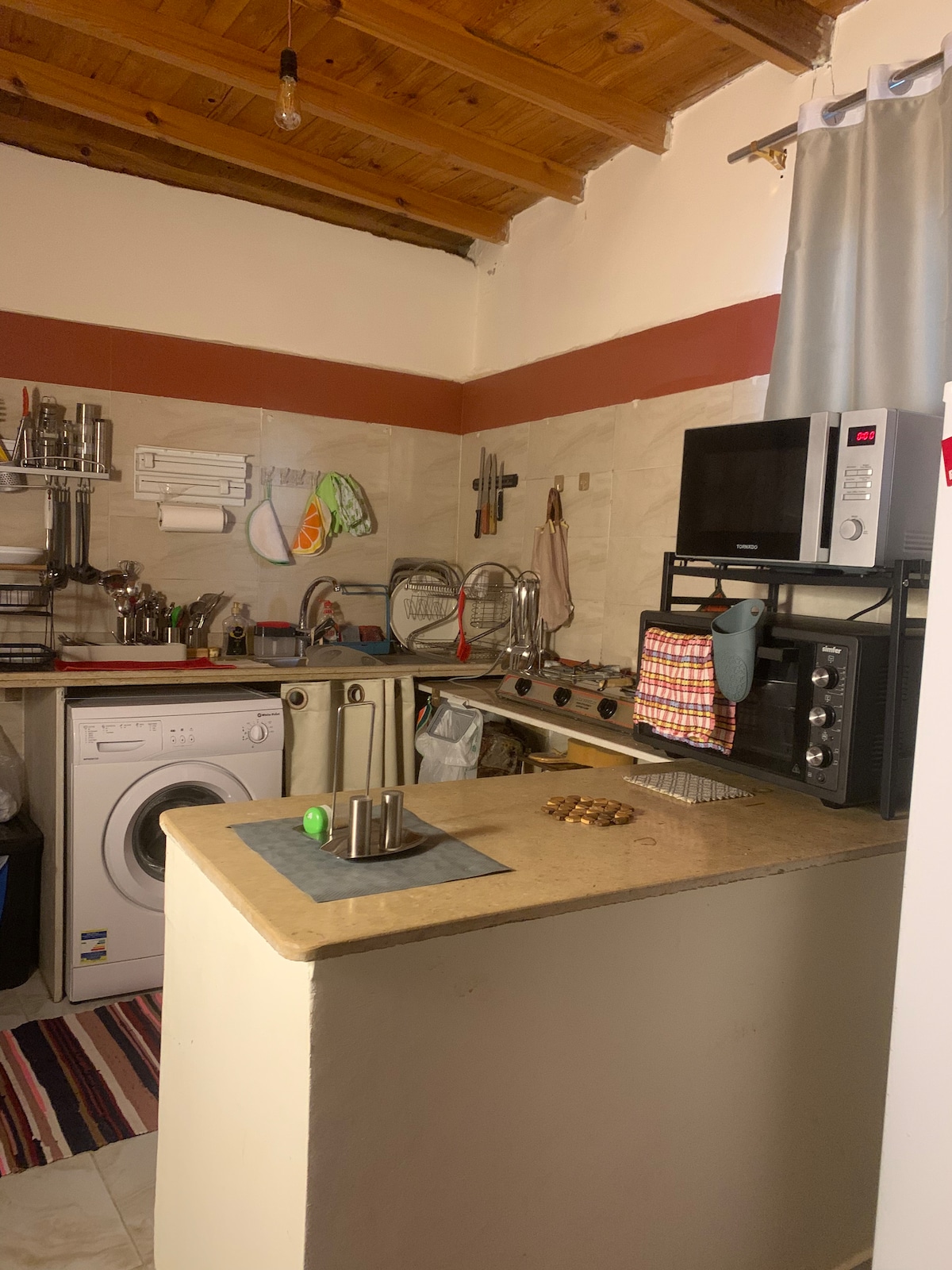 Rilassati in questo accogliente monolocale completamente arredato nel cuore di Assala, Dahab. Goditi la splendida vista sul mare e sulle montagne direttamente dal tuo balcone privato, perfetto per un caffè mattutino o un tramonto a vento. Il monolocale dispone di un comodo letto matrimoniale grande, aria condizionata, smart TV e cucina completamente attrezzata con piano cottura, forno a microonde e tutto il necessario per un soggiorno breve o una fuga più lunga. Sei a soli 2 minuti a piedi dal mare e a soli 4 minuti da Piazza Assala