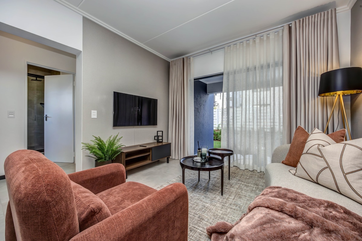Entra nel comfort elegante e contemporaneo di questo appartamento Dainfern, Fourways: l'aria condizionata e l'affidabile alimentazione di riserva mantengono ogni soggiorno senza intoppi, in qualsiasi stagione. - Letto matrimoniale con lenzuola in cotone egiziano e coperta elettrica - Cucina completamente attrezzata: Nespresso, frullatore, pentole e altro ancora - Smart TV, DStv e Wi-Fi veloce per lavoro o streaming - Patio privato con braai - Passeggiata fino al Dainfern College e a Dainfern Square - 5 minuti da Fourways Mall e Montecasino - Parcheggio custodito e sicurezza 24 ore su 24