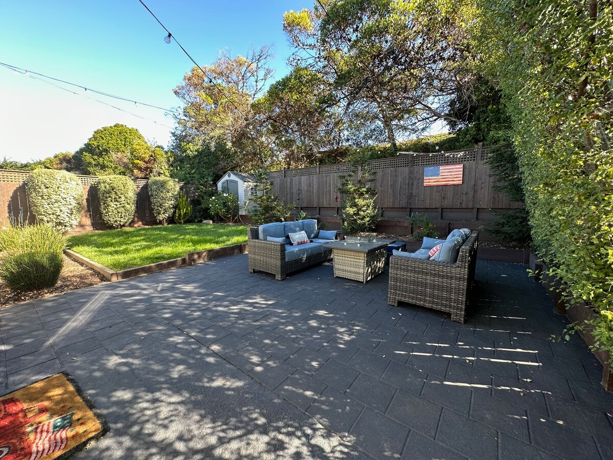 La casa è adatta ai cani! Accogliente casa con 2 camere da letto [letti matrimoniali], un bagno, in posizione centrale, con ingresso privato, tanta luce naturale, cortile privato recintato, luci da caffè, spazio per bambini e animali domestici. Sentiero di accesso alla spiaggia su Mori Point a 1/2 isolato di distanza, 1/2 miglio a piedi lungo il sentiero fino a Sharp Park Beach, potresti vedere le balene dalla riva! Il campo da golf Sharp Park dista un isolato a piedi. A 15 minuti dall'aeroporto di San Francisco | A 20 minuti dal centro di San Francisco, con vialetto privato e un sacco di parcheggi gratuiti in strada!