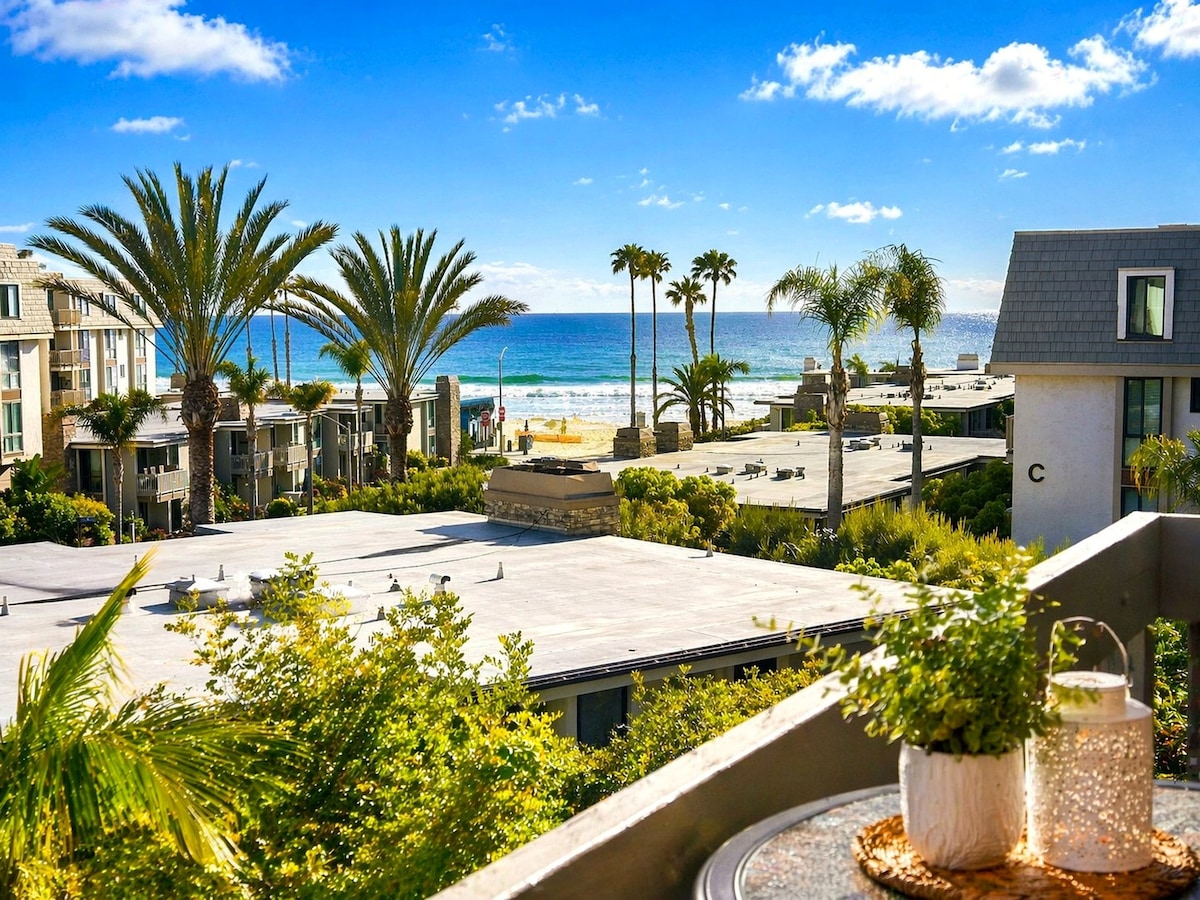 Patio on the Pacific offre splendide viste sull'oceano dal soggiorno, dalla camera da letto principale e dal balcone. In una bella giornata a Oceanside, puoi goderti le barche a vela che passano sul Pacifico dal divano! Per rilassarti e ricaricarti, usa le piscine e le spa degli edifici o goditi la passeggiata di 5 minuti fino alla spiaggia e allo strand. Goditi il lavoro qui, con Internet a 200 Mbps e una scrivania dedicata in camera da letto. Il nostro appartamento è un'unità angolare all'ultimo piano (accessibile tramite ascensore) dell'edificio G nel North Coast Village.