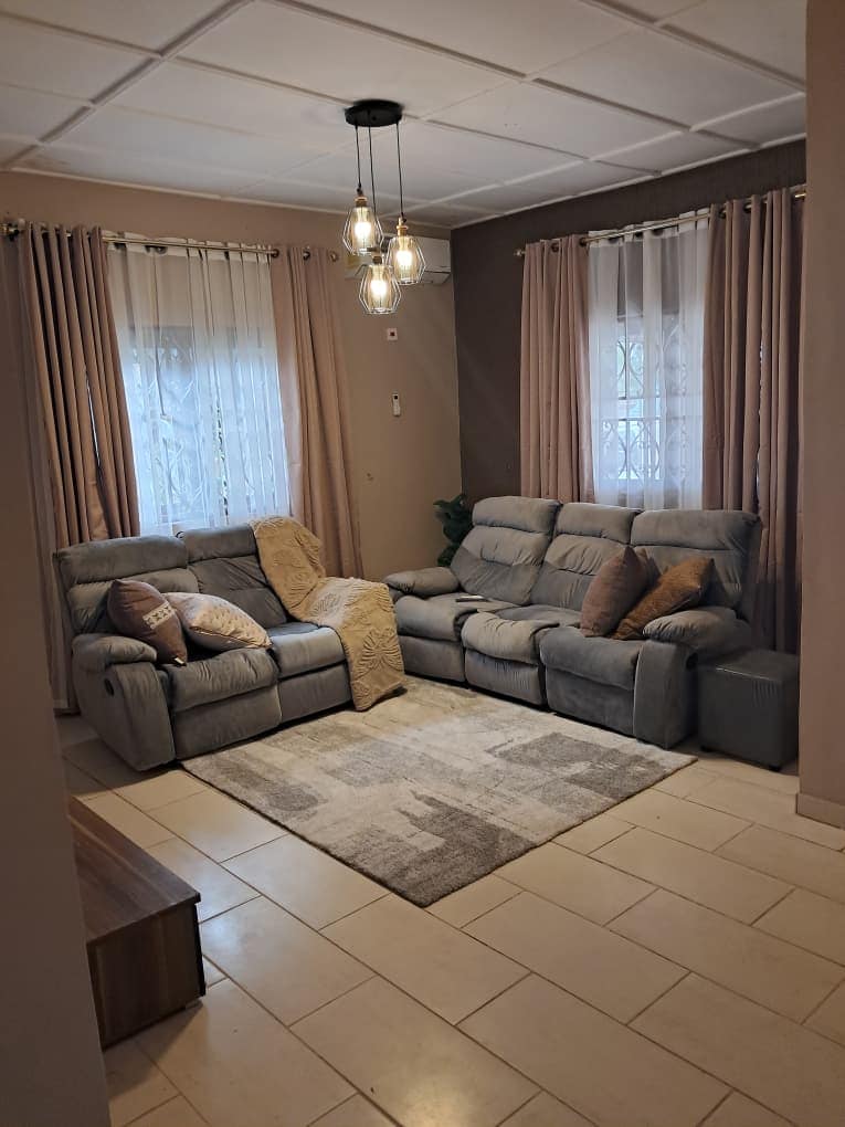 Little Noni Villa is a lovely, modern & well equipped home with large spacious grounds Close to Airport (30mins), Aburi, Chenku/Tsenku waterfall It has 3 ensuite bedrooms; 2 available for guests, 1 unoccupied and locked Amenities include: - Fast Starlink Broadband (Wifi) - Air conditioned rooms - Large living & dining room with TV and Bluetooth music system - Large well equipped Kitchen - Large airy porch - Separate Guest Toilet - Electric fence, CCTV, smoke & CO2 detectors - Large car park