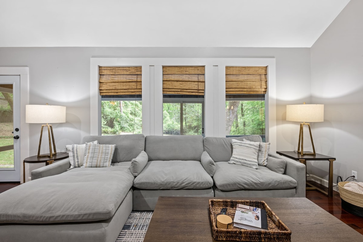 Unwind in a bright 4-bed, 2-bath home in Daphne with vaulted ceilings and coastal style, sleeps 10 guests. Prime spot: 5 min to I-10, 5 min to Mobile Bay ~ quick drives to beaches, Mobile & Fairhope. Enjoy the open living area, stocked kitchen and screened porch. King master + 3 queen rooms (2 queens in one) 5 beds ✔️Screened Porch ✔️4 Smart TVs ✔️ WiFi ✔️Washer/dryer & ample parking ✔️Quiet neighborhood Self-check-in, family friendly, smoke-free. Book Now!