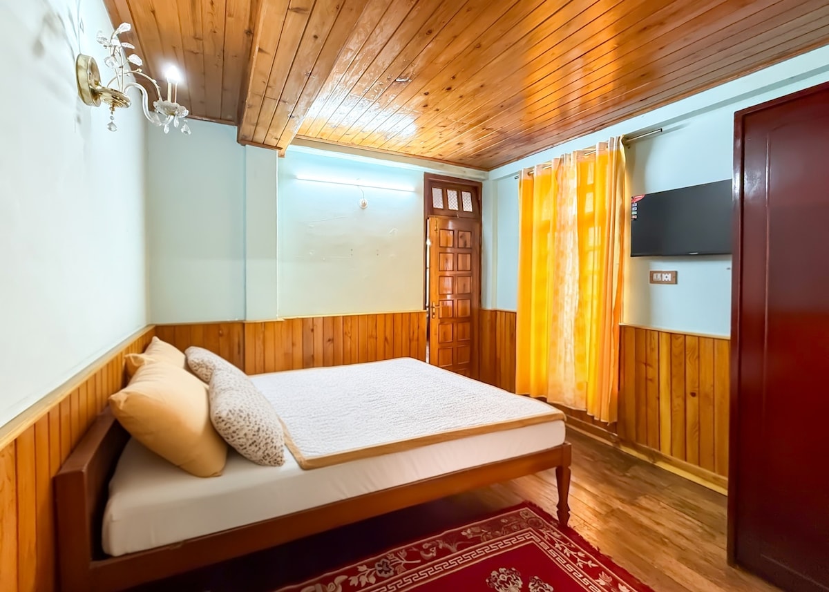Questo appartamento 1BHK si trova al primo piano di un edificio residenziale vicino all'ufficio DM. Tieni presente che l'alloggio si trova a 1 minuto a piedi in discesa e che gli ospiti devono portare i propri bagagli. NOTA * Nessun parcheggio per veicoli a 4 ruote disponibile in loco * Acqua potabile confezionata disponibile a un costo aggiuntivo * Non è consentito lavare i vestiti * Servizio di pulizia giornaliero non incluso nel prezzo di listino * Riscaldatori disponibili su richiesta da novembre a marzo a ₹400/- extra a notte