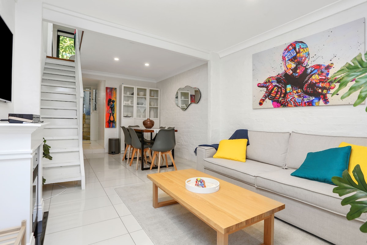 Questa incantevole terrazza con 2 camere da letto e luminosa Paddington si trova nel miglior sobborgo di Sydney. In meno di 5 minuti a piedi, puoi raggiungere a piedi i migliori ristoranti, pub, caffetterie e i famosi mercati di Paddington e Centennial Park. Immerso nella luce naturale con nuovi interni, avrai accesso a una cucina completamente attrezzata. La casa è una terrazza in stile più piccolo e le scale sono più ripide rispetto alle case moderne e a volte possono essere un problema per bambini piccoli o ospiti anziani.