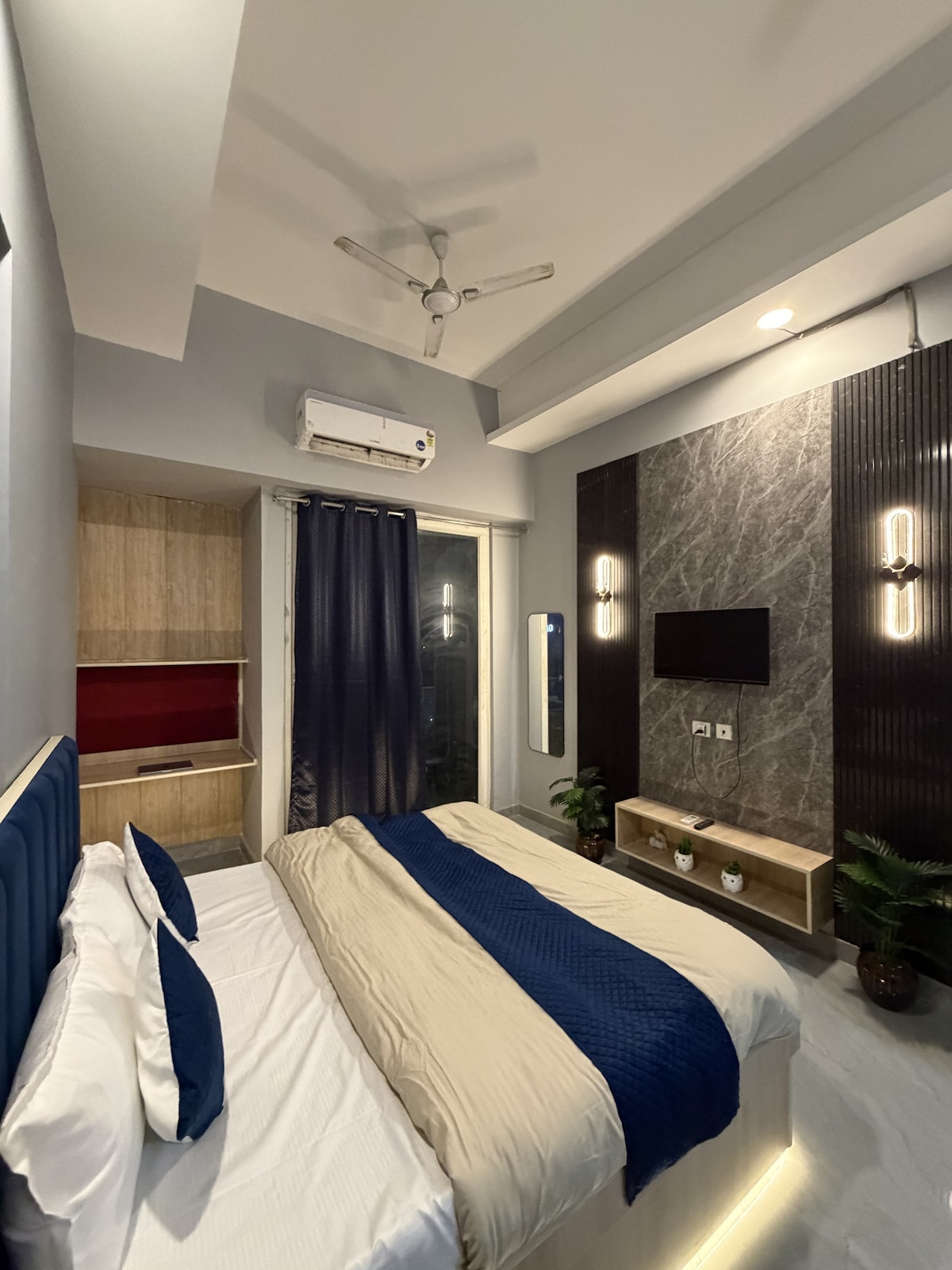 Il nostro appartamento con 2 camere da letto di nuova costruzione unisce il comfort moderno al fascino naturale. Lo spazio dispone di 2 camere da letto tranquille con letti matrimoniali, un ampio soggiorno, una cucina ben attrezzata, 2 bagni (uno annesso alla camera da letto principale e un altro accessibile dal soggiorno) e una seconda camera da letto, nonché un balcone a forma di L che offre una splendida vista sulla città. La struttura si trova vicino a un centro commerciale di lusso a Noida! Questa posizione strategica offre la comodità di negozi, caffetterie e intrattenimento.
