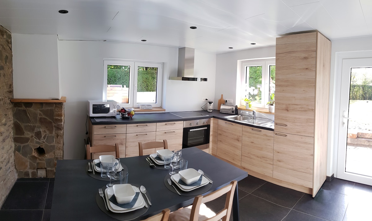 Voglia di una messa a verde? Da un cottage sperduto nel nulla? Di un livello di finitura raramente incontrato in un affitto? Da questa parte! Costruito nel 2022, il nostro cottage di 8 persone non mancherà di stupirvi. La scelta dei materiali, l'isolamento, l'arredamento, la sua posizione eccezionale sono semplicemente unici nelle Ardenne. Grazie al nostro parco potrete ammirare i nostri daini dal cottage. Novità 2025: è stato installato un impianto di condizionamento.