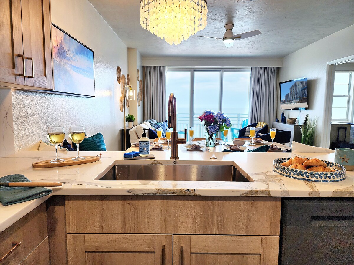Unwind and soak in the breathtaking scenery from one of three private balconies in this exquisite 2-bedroom condo located at the Wyndham Ocean Walk Resort.. Recently updated to perfection, this condo boasts a unique layout with two adjoining ocean-view suites, each featuring its own private balcony. Whether you're traveling with family or friends, this setup offers the ideal balance of communal living and personal space, ensuring a memorable stay filled with comfort and convenience