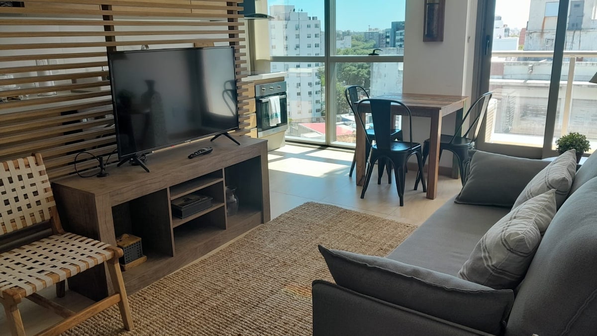 Moderno appartamento con una camera da letto in una delle migliori zone della città. Super luminoso, grandi finestre con doppi vetri che isolano il rumore. Cucina con frigorifero, cucina/forno, microonde, utensili e stoviglie; ampio soggiorno/sala da pranzo integrato, con Smart TV 50"; zona homeoffice con wifi, bagno e camera matrimoniale con accesso al balcone. Situato in una zona in piena espansione, offre un'ampia varietà di servizi. Distanza a piedi dal Parque Rodó e dalla Rambla. Trasporto a domicilio