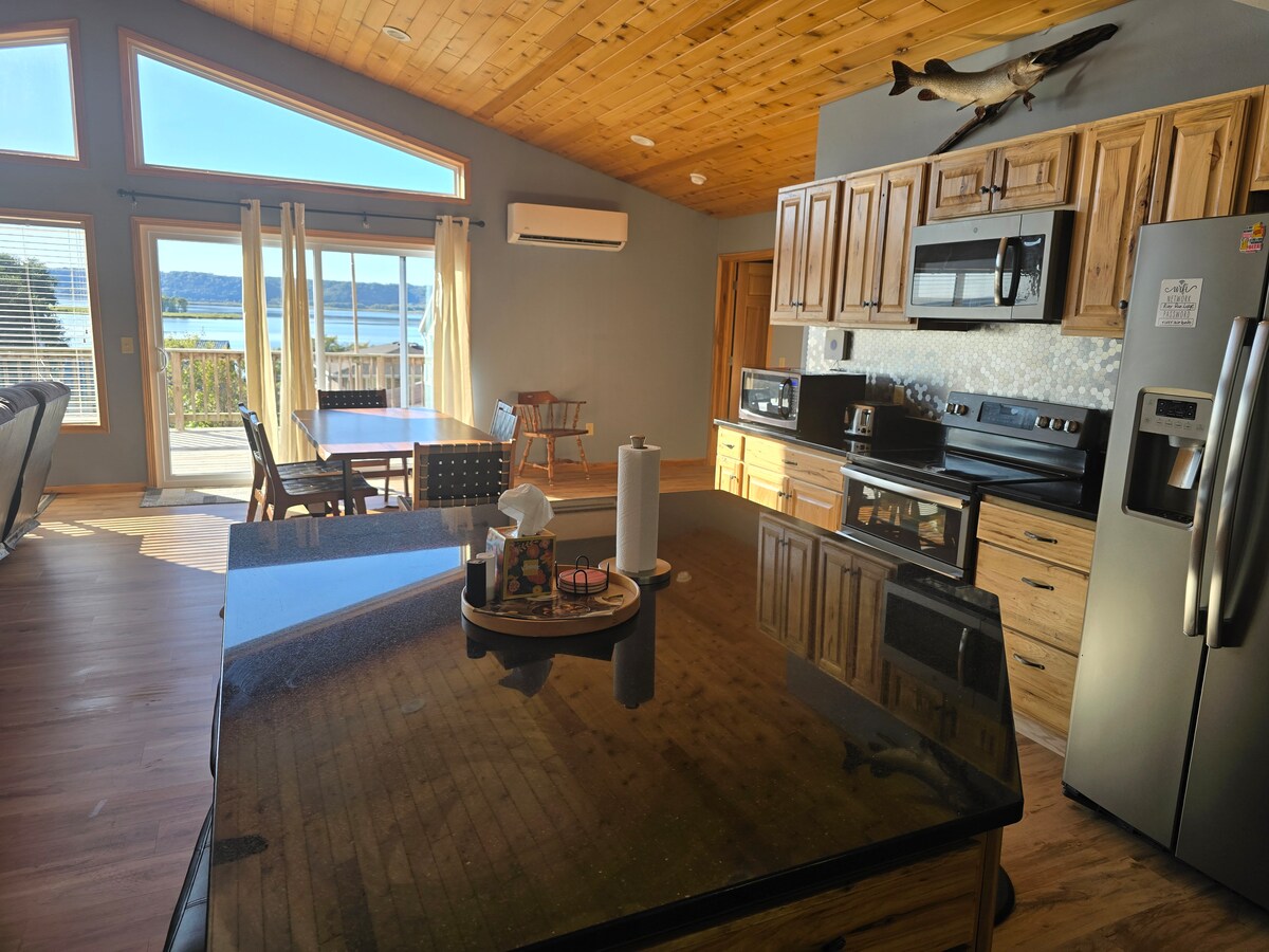 Vieni a goderti le viste mozzafiato intorno alla zona giorno e pranzo di questa bellissima casa situata a Lynxville. Questa casa ristrutturata con 5 camere da letto e 3 bagni può ospitare fino a 14 persone. Ampia zona pranzo/soggiorno per riunioni di famiglia, sala proiettore extra al piano inferiore e ampia terrazza per sedersi e godersi la vista sul Mississippi, sia di giorno che di notte, mentre si griglia in una notte estiva. Completamente attrezzata per la tua vacanza. Vicinissima a molte attrazioni locali e alla rampa per le barche.