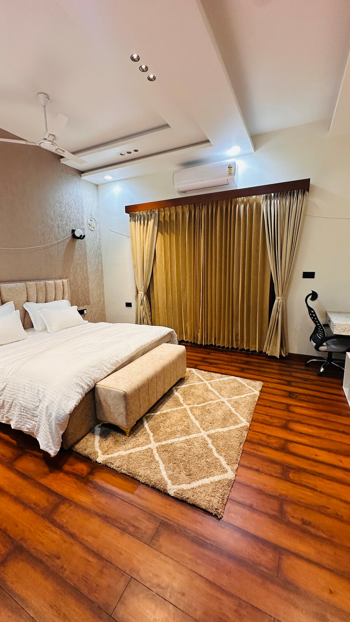 Set against the scenic Aravalli hills, this luxurious 4-BHK villa in Udaipur features a large private pool, a separate lounge and bar area, spacious living room, and a fully equipped modern kitchen. With four elegantly designed bedrooms, each with ensuite bathrooms, two expansive gardens, and serene outdoor sit-outs, the villa offers privacy and comfort. Located close to Rana Pratap Railway Station (10 km) and Maharana Pratap Airport (8 km), it’s the perfect blend of luxury and convenience.