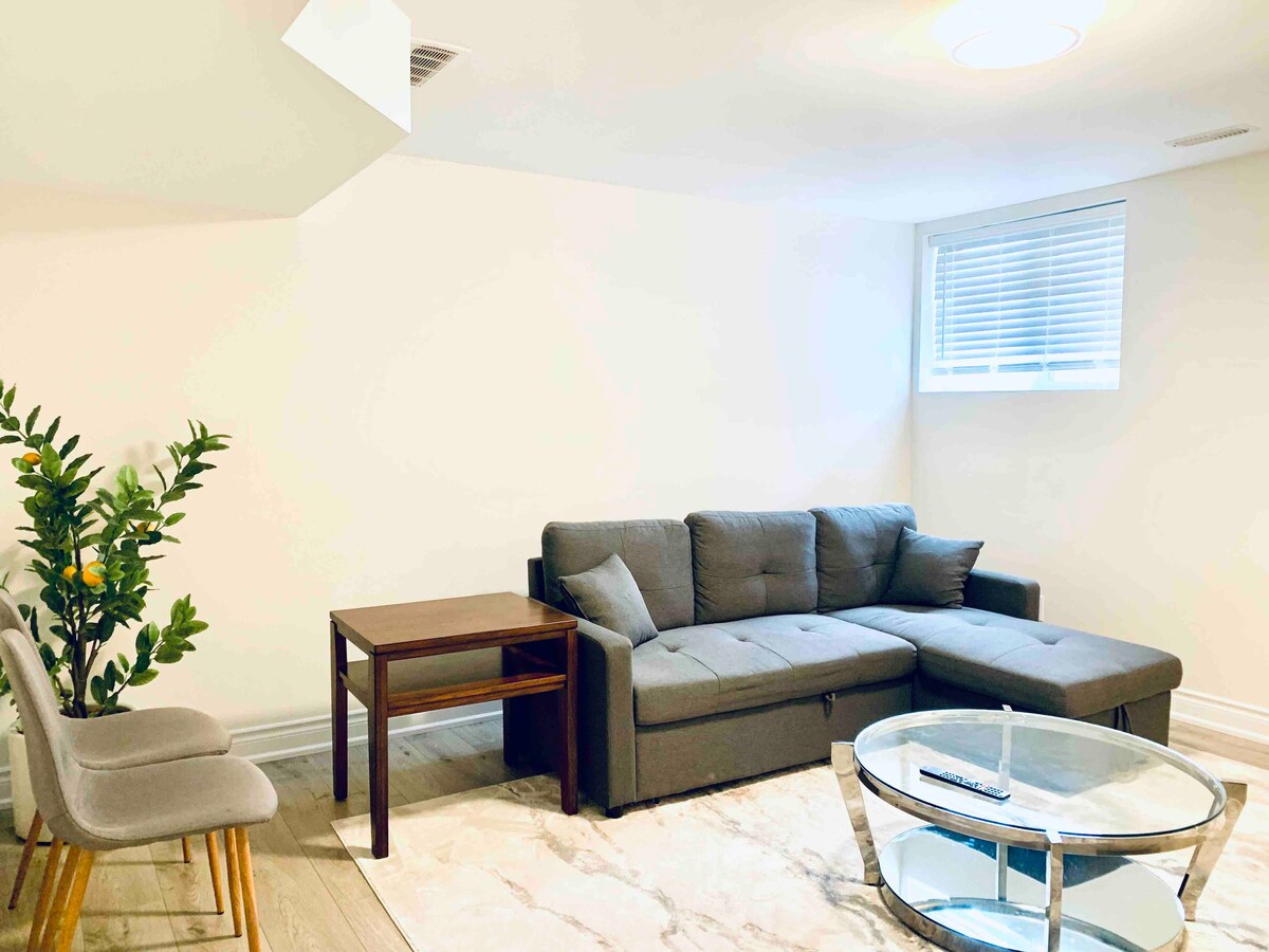 Dimentica ogni preoccupazione in questa ampia oasi di serenità. Ti diamo il benvenuto nel nostro accogliente seminterrato in posizione centrale con ingresso privato separato. Questo alloggio si trova a soli 2-5 minuti dal supercentro Walmart, dal negozio di alimentari No Frills, da Winners, Homesense, Marshalls, dall'ospedale universitario, dall'Università dell'Ontario occidentale e da molti altri luoghi. L'elegante unità è perfetta per i lavoratori e per le persone che cercano un soggiorno confortevole e privato in un bellissimo quartiere.