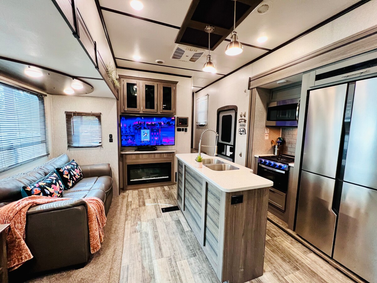 Questo camper di lusso si trova a 10 minuti a nord di Denton, a 20 minuti a sud del WinStar Casino, a pochi minuti dal porto turistico e dalle rampe per le barche del lago Ray Roberts e a meno di un'ora dal DFW. L'unità è di proprietà di un'organizzazione senza scopo di lucro che fornisce assistenza residenziale ai giovani in affido con autismo e ritardi nello sviluppo. Tutti i proventi di questo affitto vanno alla cura e al trattamento dei nostri giovani che serviamo. Gli ospiti possono anche ricevere pass di accesso alla nostra fattoria di 8 acri per incontrare il nostro amichevole bestiame su richiesta.