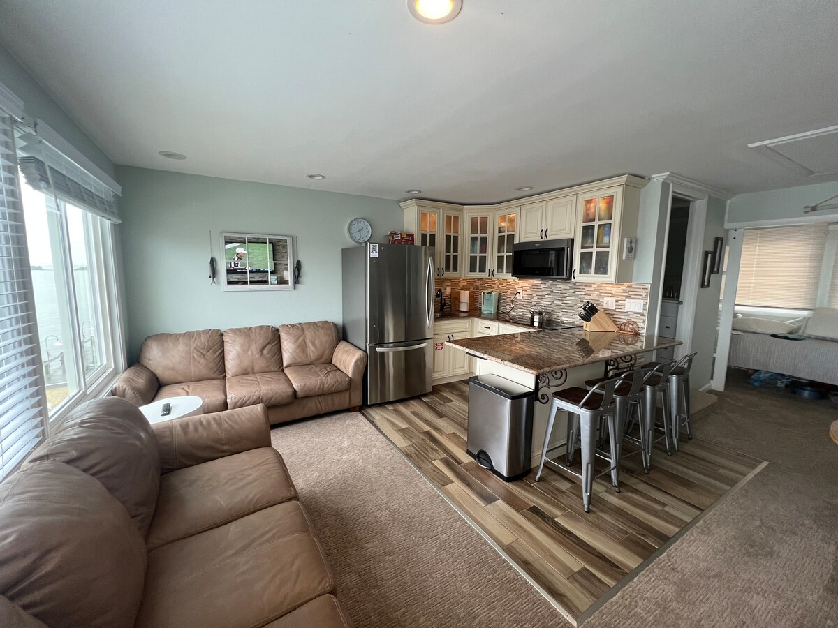 Goditi il tuo angolo di paradiso! Esci dalla porta 10 gradini fino all'acqua! Moderno appartamento situato sulla baia con una splendida vista, un patio, una griglia, una spiaggia privata, uno scivolo per la barca e 2 isolati dall'oceano. Perfetto per coppie e piccole famiglie! Si tratta di un appartamento open space di 500 piedi quadrati ben arredato con 1 camera da letto, ufficio e 1 bagno. Siamo molto orgogliosi del nostro appartamento e teniamo tutto aggiornato. Aggiorna e aggiorna l'autunno 2025 con i nuovi mobili del soggiorno e della camera da letto.