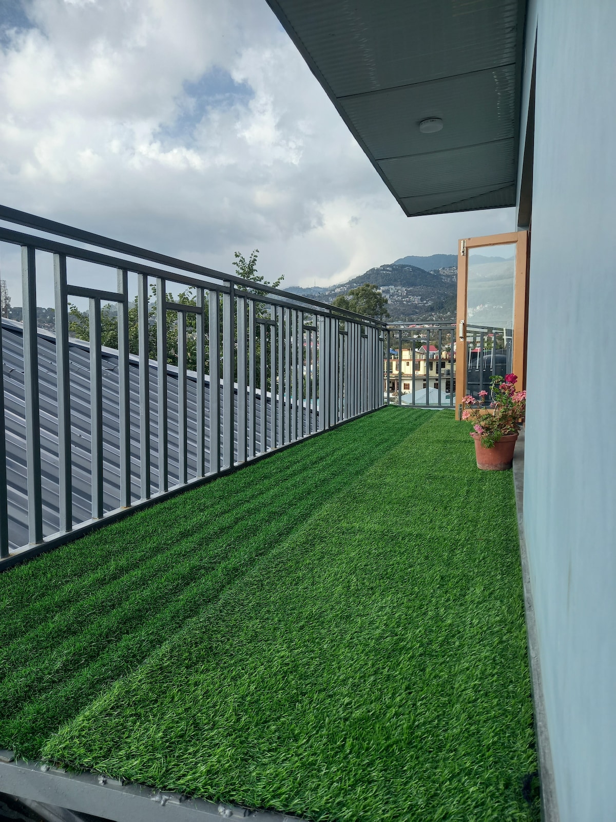 Coppia in pensione del governo dell'Himachal che vuole offrire un pezzo della propria casa per rendere il tuo soggiorno confortevole e memorabile. Puoi goderti un bellissimo tramonto con vista sullo stadio di cricket HPCA mentre sorseggi un caffè sulla tua terrazza privata. È un mix di natura, intimità e comfort. L'appartamento dispone di un soggiorno, una camera da letto con cabina armadio, bagno e servizi igienici separati. Ti sarà fornito un posto auto gratuito. La casa stessa appartiene alla famiglia di amanti delle piante che vive al piano terra