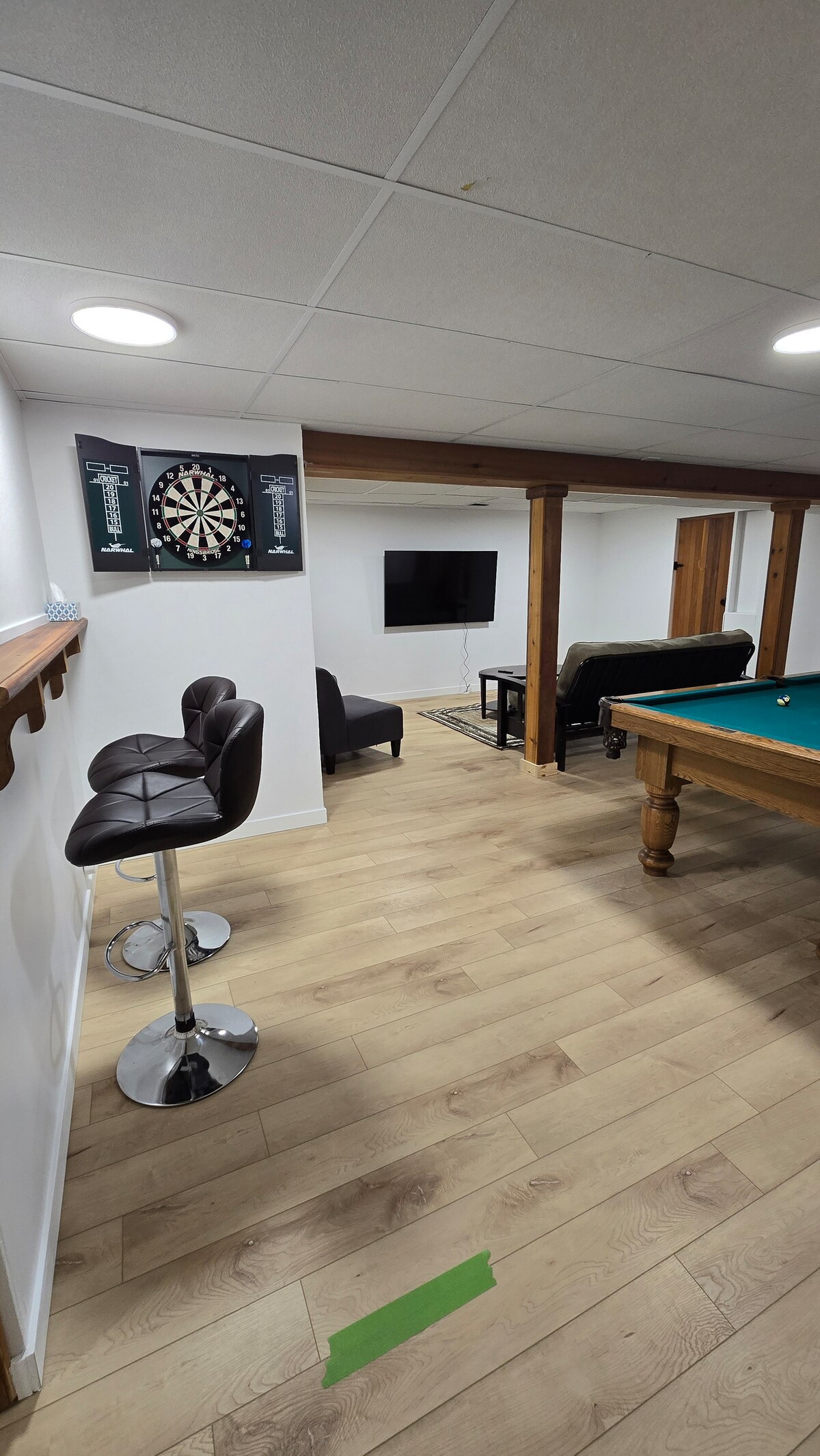 Si tratta di circa 185 metri quadrati di spazio abitativo tutto per te. Abbiamo un ingresso comune nel garage. L'affitto è solo per il piano inferiore, con la tua porta. Questa suite nel seminterrato ha grandi finestre e molto spazio, oltre a una cucina. Abbiamo una stufa a legna per offrire un'accogliente atmosfera di campagna. Questa è una casa nuova con un ambiente rilassato, smart TV da 60" con lettore DVD, doccia a vapore e tavolo da biliardo per il tuo divertimento. Zona molto tranquilla circondata da un campo di fieno, con focolare e area salotto.