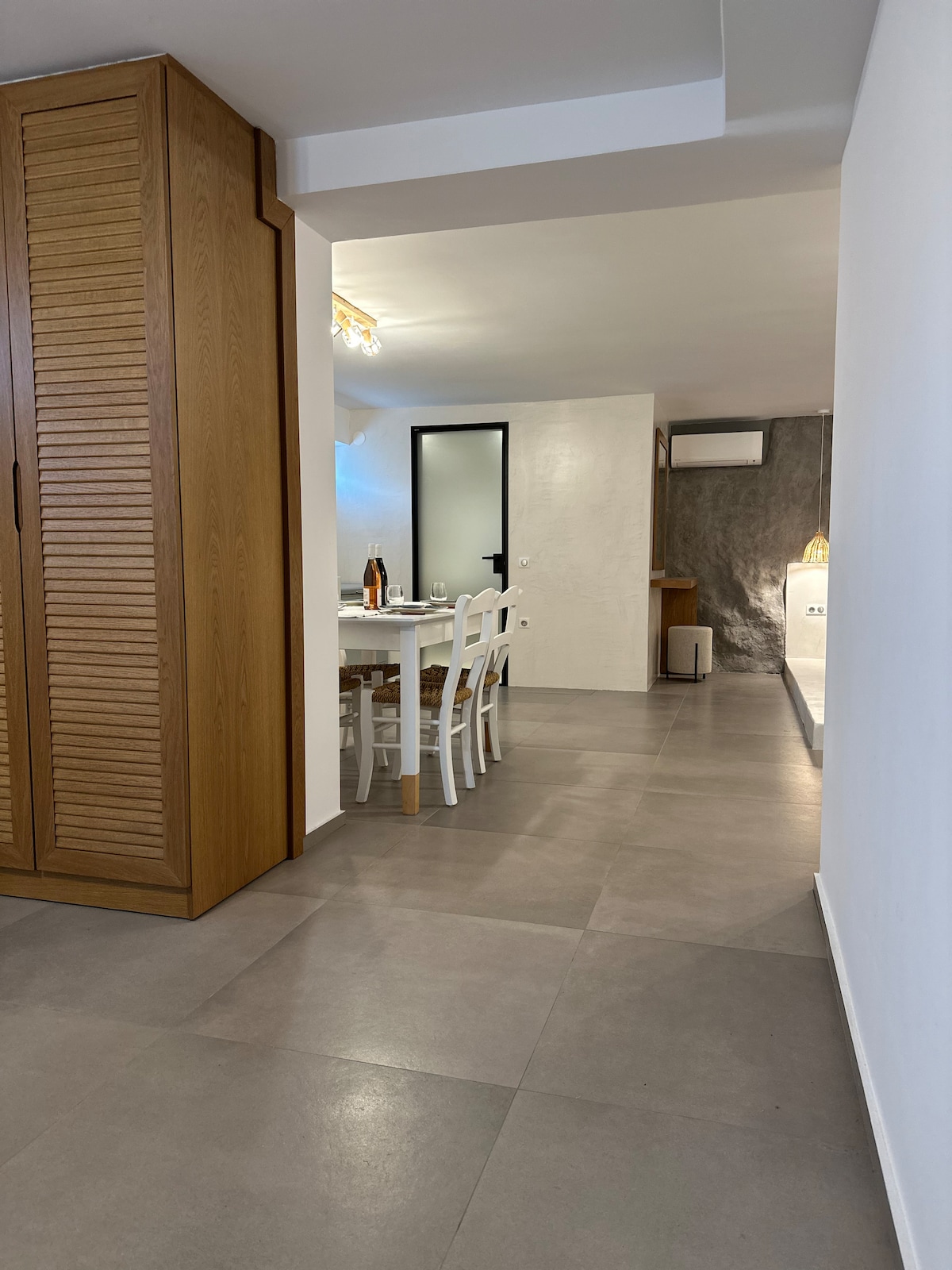 Il nostro appartamento spazioso e completamente ristrutturato è arredato con gusto e dotato di comfort moderni, tra cui due unità di aria condizionata, internet in fibra ottica, una lavatrice, una lavastoviglie e una cucina completamente attrezzata per un soggiorno confortevole. Progettato pensando a te, ti fa sentire come a casa tua. La camera da letto è separata per una maggiore privacy. Sarai a pochi passi dalla spiaggia, con facile accesso a taverne, ristoranti, caffè, negozi, una fermata dell'autobus, un campo da tennis e un museo locale. SPIAGGIA - 1-2 minuti a piedi.