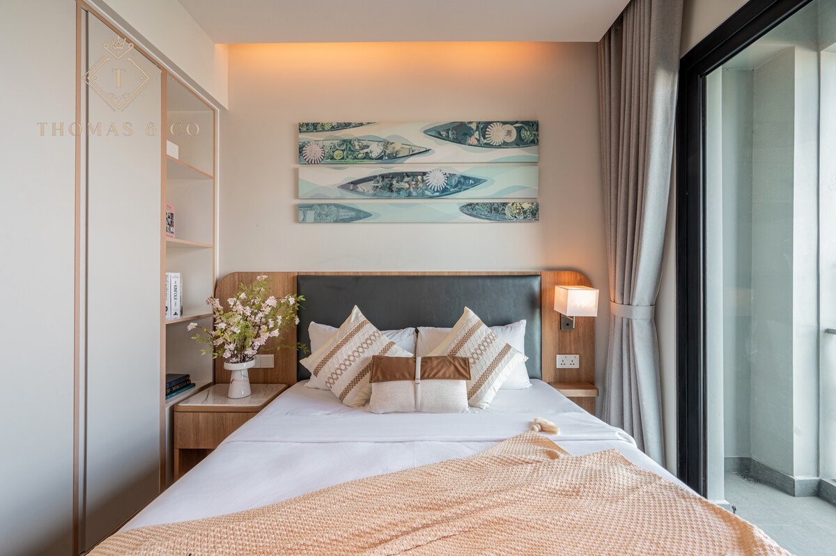 L'appartamento è splendidamente progettato in stile Wabi Sabi situato nell'edificio D1Mension Residences, il centro del Distretto 1, lo stile artistico, le strutture speciali del resort di alto livello_piscina termale_bagno termale_bagno turco, palestra_sala riunioni, sala lavoro privata, acquario da giardino, piza 4’a destra, area barbecue in giardino, area giochi per bambini, ampio salotto, tutte le finestre e i balconi della camera da letto sono ariosi, l'appartamento è unico, lussuoso, di classe.
