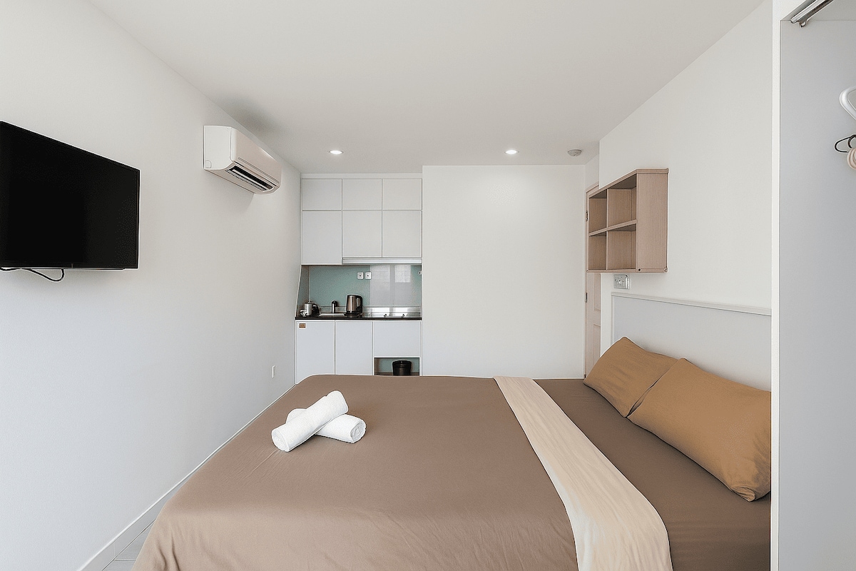 A bright Scandinavian-style balcony studio at Lavida Plus is thoughtfully furnished with everything you need for a comfortable LONG STAY 🌟, from fully stocked kitchen to an in-unit washer, making it feel truly like your own home. 🔥 SPECIAL OFFER: Book for 7+ days now to unlock our special WEEKLY DISCOUNT! Located in District 7, just minutes from Phu My Hung, RMIT, SECC, Vivo city and Crescent Mall. 호치민 7군 푸미흥 중심 아파트 SECC 전시장 및 비보시티 바로 옆에 위치한 현대적인 숙소입니다. 胡志明市第七郡 (富美兴/富美興) 高级公寓紧邻 SECC 展览中心和 购物中心