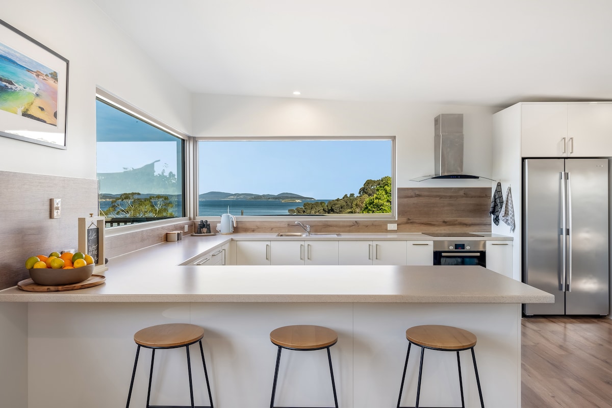 Rilassati e rilassati in questo spazio tranquillo ed elegante che offre una splendida vista sulla penisola di Tasman. Assisti all'aurora boreale quando le condizioni sono favorevoli. Goditi la comodità di una breve passeggiata dal negozio locale, dalla rampa per barche e dalla spiaggia di Primrose Sands. L'ampio cortile completamente recintato è adatto ai cani e dispone di un ampio ponte posteriore con barbecue. Rilassati nel letto più comodo che tu abbia mai vissuto e goditi la cucina completamente attrezzata con bar per la colazione, un'accogliente zona salotto e un moderno bagno/lavanderia.
