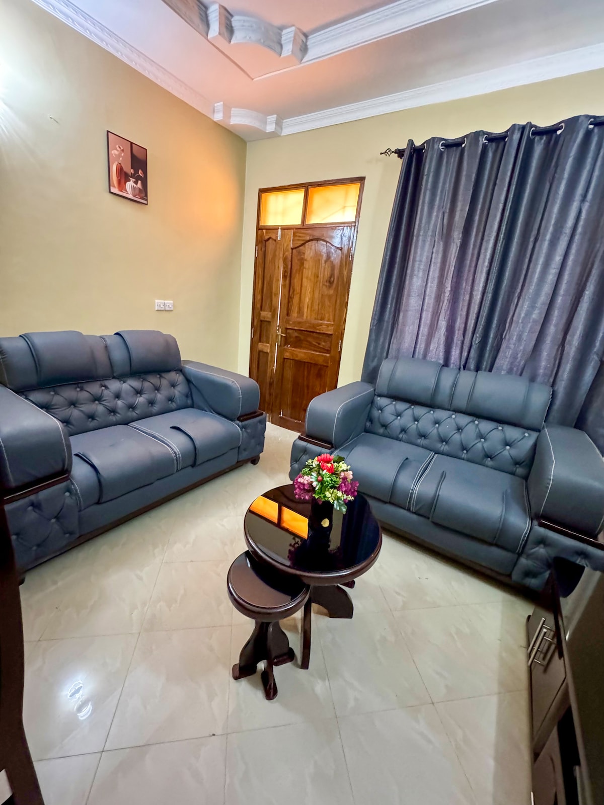 Benvenuto nel nostro appartamento tranquillo, moderno ed elegante situato nella zona di Mlimwa. È un appartamento con due camere da letto, una matrimoniale e una seconda. Dispone di un ampio soggiorno ben arredato, di una cucina e di una zona pranzo. L'appartamento è completamente arredato e dotato di tutti i servizi necessari per rendere il soggiorno confortevole e piacevole. Benvenuto a Dodoma: sentiti come a casa tua. Abbiamo una persona che può fornire il supporto necessario per rendere il tuo soggiorno lontano da casa memorabile e piacevole.
