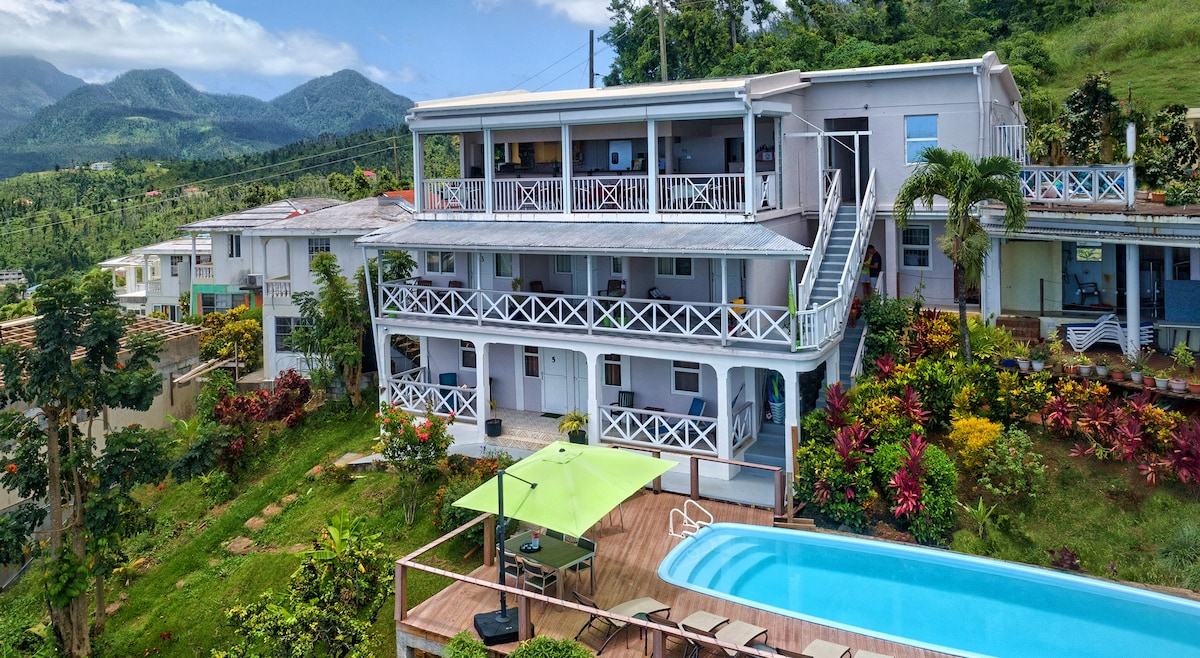 Situato alla fine del segmento 3 del Waitukubuli National Trail. Vicino alle cascate e ai laghi di Trafalgar. Nelle immediate vicinanze delle terme di zolfo. Si prega di notare che, sebbene le strutture per la ristorazione siano disponibili presso il nostro alloggio, è importante notare che il costo dei pasti NON è comprensivo della tariffa della camera.