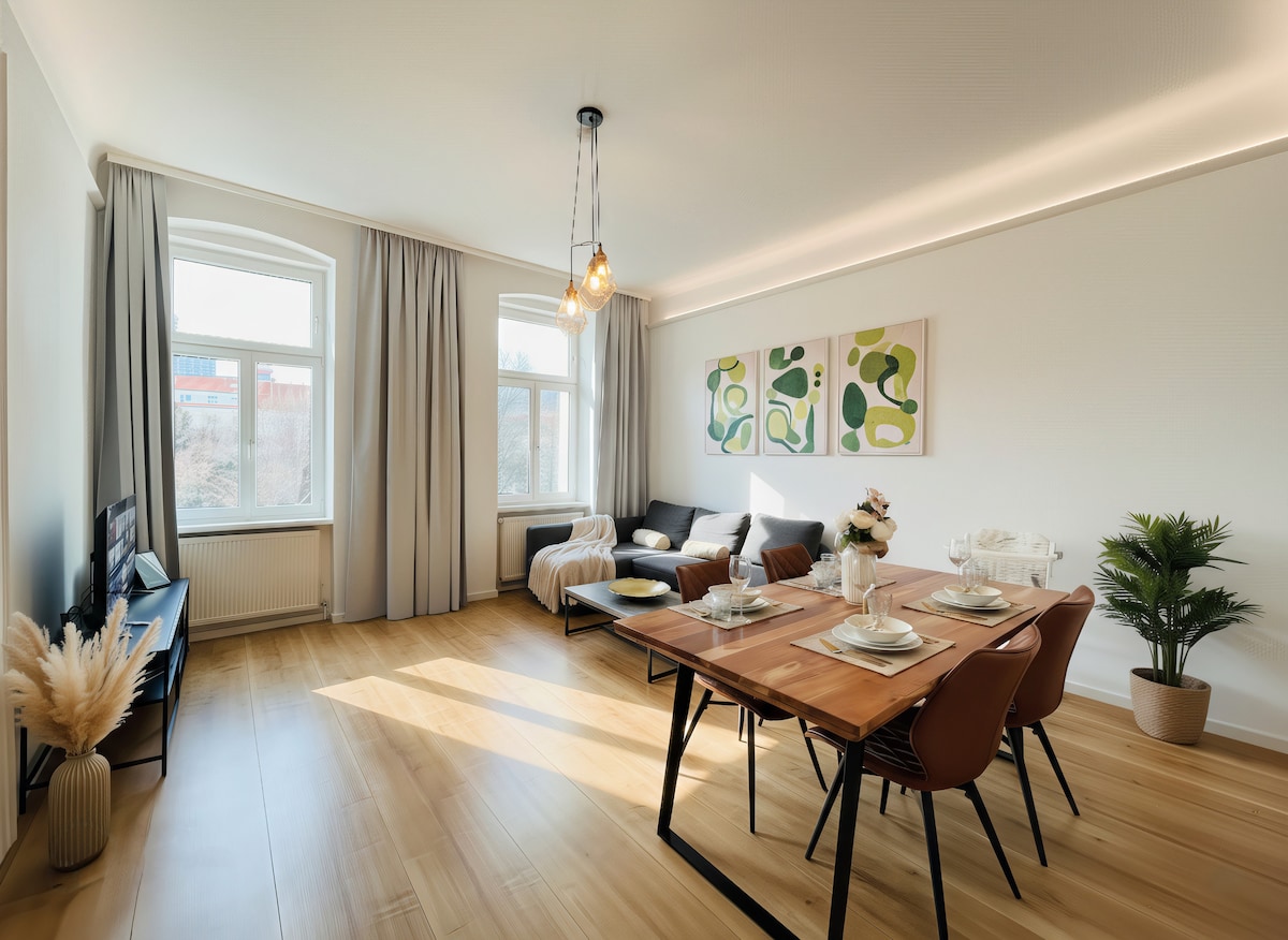 L'appartamento è situato in una tranquilla strada laterale verde (senza rumore della strada) e offre una bella vista ampia dal balcone su una stazione ferroviaria dismessa e sulla città. Tuttavia, l'appartamento è a solo 1 minuto a piedi dalla stazione della S-Bahn Traisengasse e a 3 minuti a piedi dalla stazione della U6 Dresdnerstraße. Con questi collegamenti, il centro della città è facilmente e comodamente raggiungibile (soprattutto con la S-Bahn) in 15 minuti.