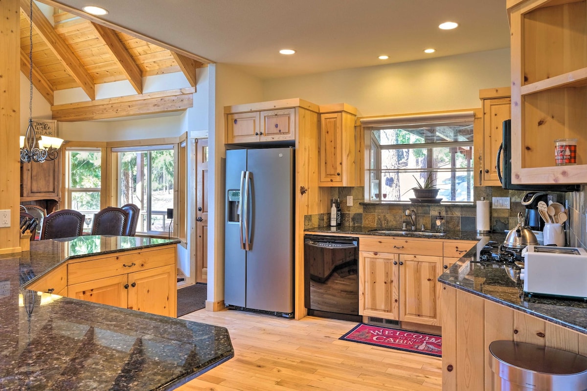 La nostra casa è un moderno e accogliente chalet con due camere da letto e due bagni nella comunità di Lakemont Pines. Al piano superiore, un ampio loft (terza camera da letto) offre due letti matrimoniali, un divano e una TV, perfetta per gli ospiti aggiuntivi o un accogliente rifugio. Questa è una vacanza meravigliosa per coppie e piccole famiglie che vogliono rilassarsi e distendersi. Trascorri le giornate nuotando nel lago privato, sciando a Bear Valley e facendo escursioni nella Stanislaus National Forest. La sera, rilassati sulla veranda e goditi il cielo notturno.