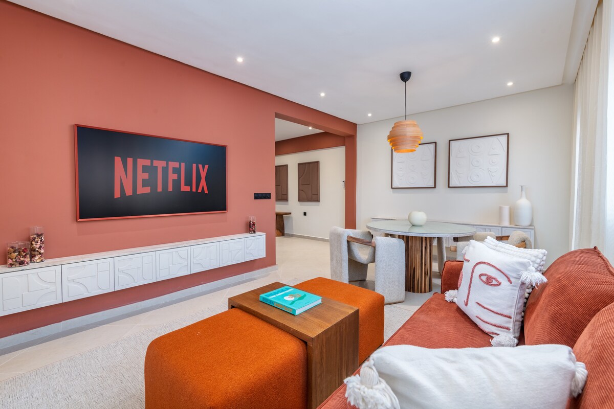 Scopri un appartamento moderno e dotato di tutti i comfort. - 3 min alla stazione, 5 min a gueliz , 10 min all'aeroporto. - Soggiorno luminoso: TV 65’’, Netflix, aria condizionata - Camera cinema: proiettore per serate film - Camera da letto gaming: PS4, TV, atmosfera divertente - Suite matrimoniale: letto di design, aria condizionata, bagno privato - 2 bagni: comfort per tutti - Cucina attrezzata: tutto l'occorrente - Balcone: perfetto per rilassarsi - Parcheggio gratuito e sicuro