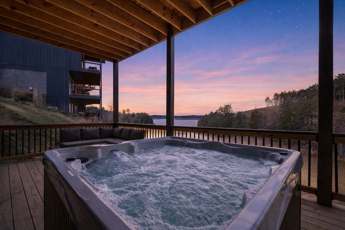 Escape into nature at this peaceful lakeside retreat surrounded by treetops, fresh mountain air, beautiful mountain views, and two spacious covered decks made for morning coffee or sunset watching. Swim off the dock, sway in lakeside hammocks, and gather around the firepit under the stars. After a day outdoors, unwind in the hot tub or relax inside the modern, open living space. All this serenity is just a scenic drive from Pigeon Forge, Dollywood, and the Great Smoky Mountains National Park.