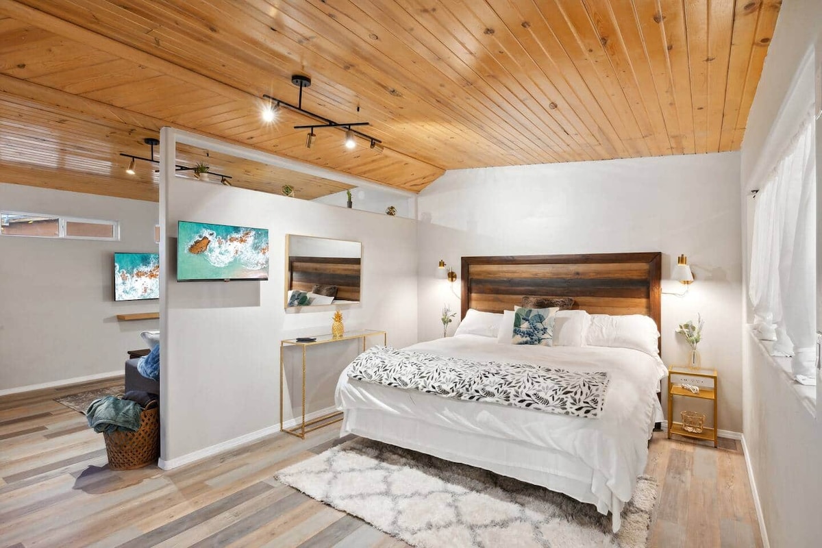 This meticulously designed studio is located in the heart of a historic downtown Albuquerque neighborhood. The charming neighborhood, which is over a century old, is highly walkable and bike-friendly, with a well-established bike route just a half-block away from the Airbnb. Within a block or two, there are numerous restaurants and coffee shops to choose from. This prime location is perfect for anyone looking to explore the city with so many attractions just a short drive away.