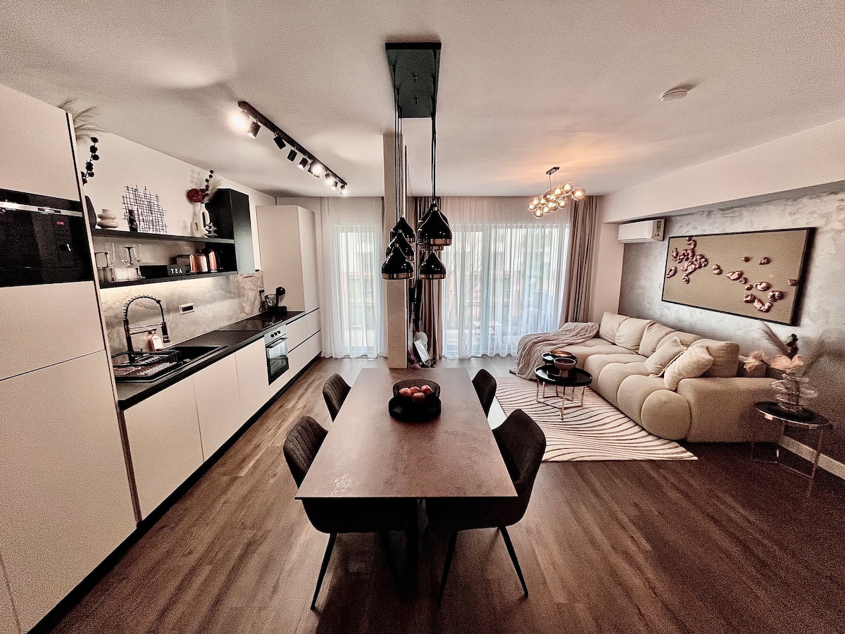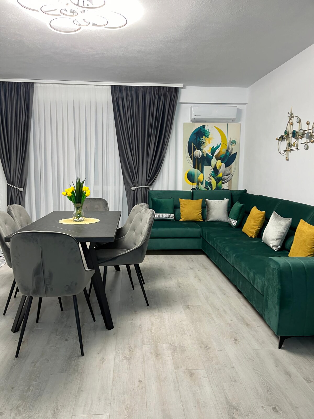 Monolocale di 30 m² completamente ristrutturato e arredato in stile moderno. Ideale per coppie o famiglie più piccole. Situato in un'eccellente zona della Cittadella di Alba Iulia, centrale ma tranquilla, con parcheggio gratuito dietro l'edificio. Dispone di cucina open space completamente attrezzata, bagno con doccia, letto king-size, divano letto, Smart TV e Wi-Fi veloce. Negozi, farmacia, supermercato e fermata dell'autobus di fronte all'edificio.