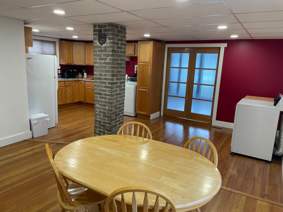 L'intero gruppo si sentirà a proprio agio in questo spazio spazioso e unico. Le radici di questo edificio risalgono a più di 100 ANNI fa. Ma l'intero spazio è NUOVO e ricco di lavori di ristrutturazione. Pavimento originale in legno massello degli anni '50 immerso in un nuovissimo pavimento in legno massello. Un camino dei primi del 1900 arriva nel bel mezzo della nuova cucina. Un sacco di luce naturale scorre attraverso tutte le nuovissime finestre.