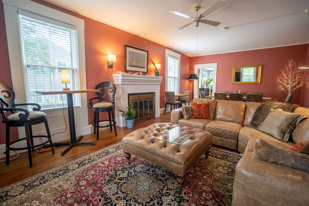 Welcome to Oakhaven - your beautiful Vineyard retreat with privacy, parking & outdoor living. • 3 bedrooms (1 king, 2 full, 1 twin) • 2 baths + outdoor shower • Queen sleeper in living room (House Sleeps 7 - MAX) Enjoy the patio, hot tub (June - Sept), screened gazebo w/ fan/light, and al fresco dining by the outdoor fireplace. Linens, bath towels & beach gear provided. NOTE: August reservations require a min. 6-night stay, and bookings must run consecutively without gaps in the calendar.