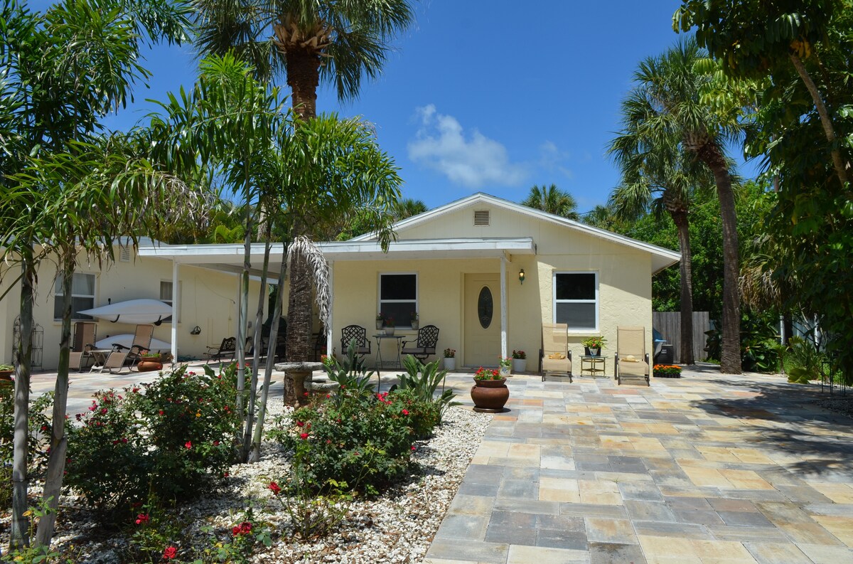 Ti diamo il benvenuto nella nostra villa in stile cottage 1/1, a pochi minuti dal centro di Dunedin. A pochi passi da Main Street e a 12 minuti di auto da Honeymoon/Caladesi Island! Raggiungi a piedi il Pinellas Trail, i birrifici, i ristoranti, il porto turistico sul lungomare e lo stadio di baseball Blue Jay. Goditi la cucina pluripremiata, l'intrattenimento dal vivo e i tramonti mozzafiato prima di tornare alla pace e alla tranquillità della tua area privata. Dunedin è una città che accoglie i golf cart, con noleggio locale disponibile per girare la città.