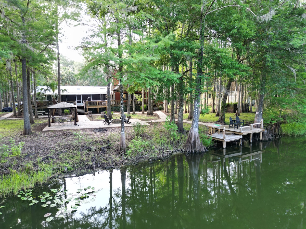 Il tuo rifugio privato su un acro situato su un canale fino al fiume Withlacoochee, che si estende su 2 lati della struttura. Rilassati sul tuo portico che si affaccia sull'acqua mentre osservi gli uccelli e i cervi giocare. I bambini adoreranno l'altalena, i giocattoli come Lego, i tronchi Lincoln, il tavolo da biliardo e la palla da sci. Kayak disponibili per i nostri ospiti in attesa di avventura. Legati intorno al focolare, percorri i sentieri, rilassati sulle amache e pesca sul molo. Imposta il grande schermo per guardare un film. Ti diamo il benvenuto!