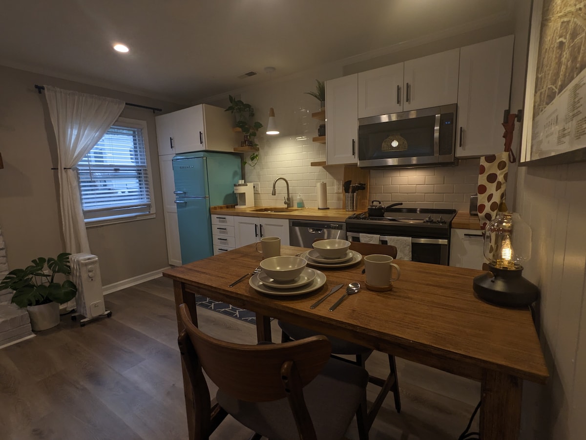 Suite privata ristrutturata in ottima posizione: a 10 minuti in bicicletta dal centro o a breve distanza in auto da RTP, aeroporto e Duke (circa 15 minuti) o a 3 isolati dalla fermata dell'autobus. Con i suoi 32 metri quadri, è perfetto per una persona sola o una coppia, e offre lavatrice/asciugatrice e una cucina attrezzata con tostapane, forno, frullatore e macchina per il caffè. Il portico posteriore schermato ha comodi mobili da patio per godersi l'esterno senza insetti! Il pavimento interamente piastrellato e il cortile recintato privato e privo di sostanze chimiche sono perfetti per i viaggiatori con animali domestici.
