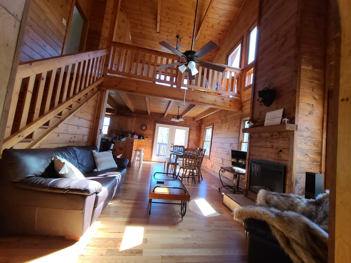 Benvenuto al Woodland Hills Lodge! Vivi un'epica vacanza sui monti Blue Ridge prenotando questa splendida baita di tronchi dove sarai avvolto dal profumo rilassante del pino svizzero e dalla frizzante aria di montagna. La baita vanta 3 camere da letto, 2 bagni completi, vasca idromassaggio, sala giochi e laghetto privato per la pesca! Situato in una tranquilla comunità recintata con accesso al parco giochi comune. Potrai goderti la tranquillità della posizione pur essendo nelle immediate vicinanze dei comfort del centro di Marion, Carolina del Nord