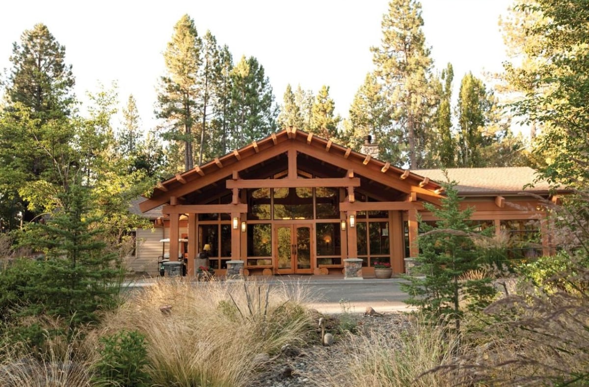 Questa casa personalizzata in stile nord-occidentale del 21° secolo si trova su una tranquilla strada senza uscita sopra il fiume Deschutes, a circa 10 minuti di auto da Old Mill, circondata da pini ponderosa. Questa casa di lusso ha un arredamento di buon gusto e splendidi dettagli in legno. La luce naturale entra dalla parete di finestre nella grande sala. La casa dispone di una cucina completamente aperta con piani in cemento, un grande camino a legna, pavimenti in legno massello e un ampio patio.
