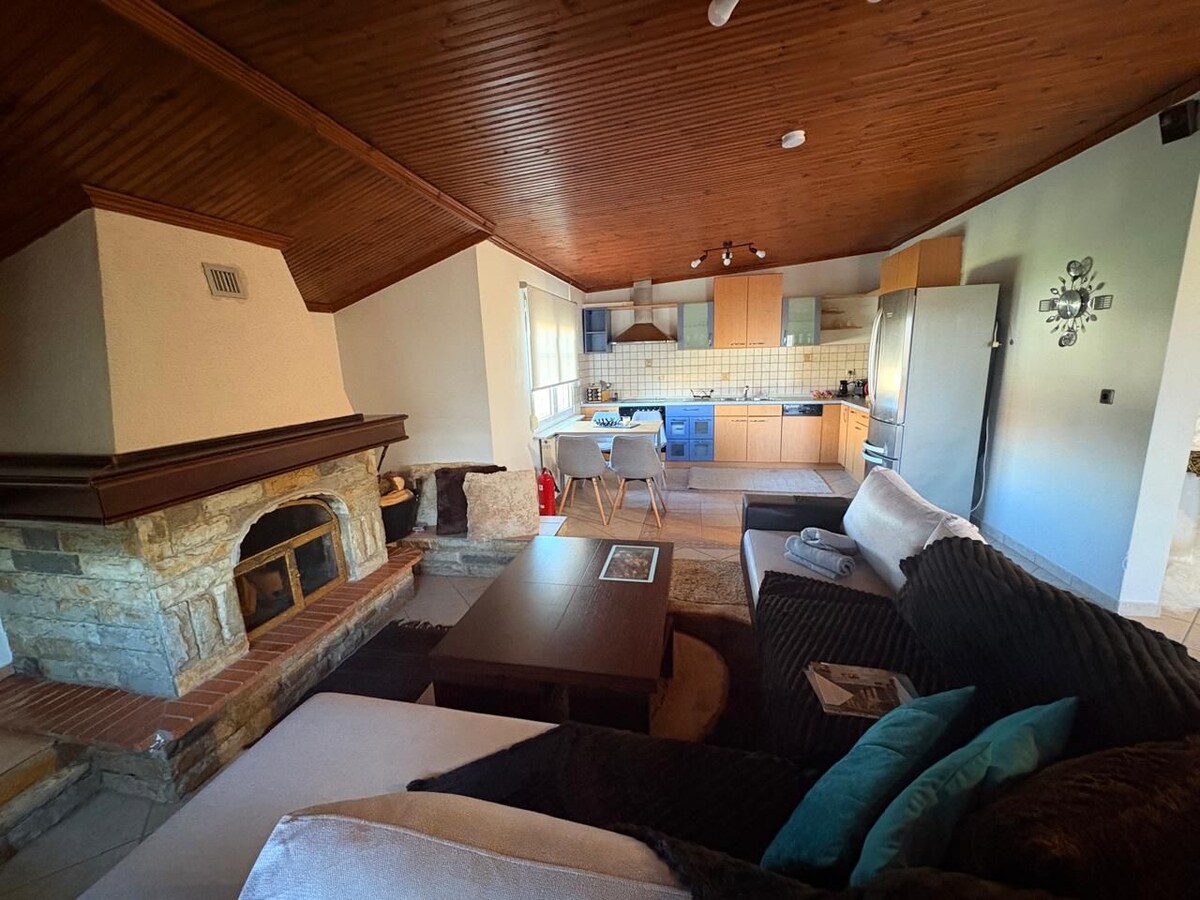 A luxury stone apartment full of comforts just 100 m. from "Golden beach" the most beautiful of Thassos Island! Enjoy the great view of "Ipsarion" mountain and the peacefulness of the house.Cool inside and relaxing, perfect for a family or 2 couples!