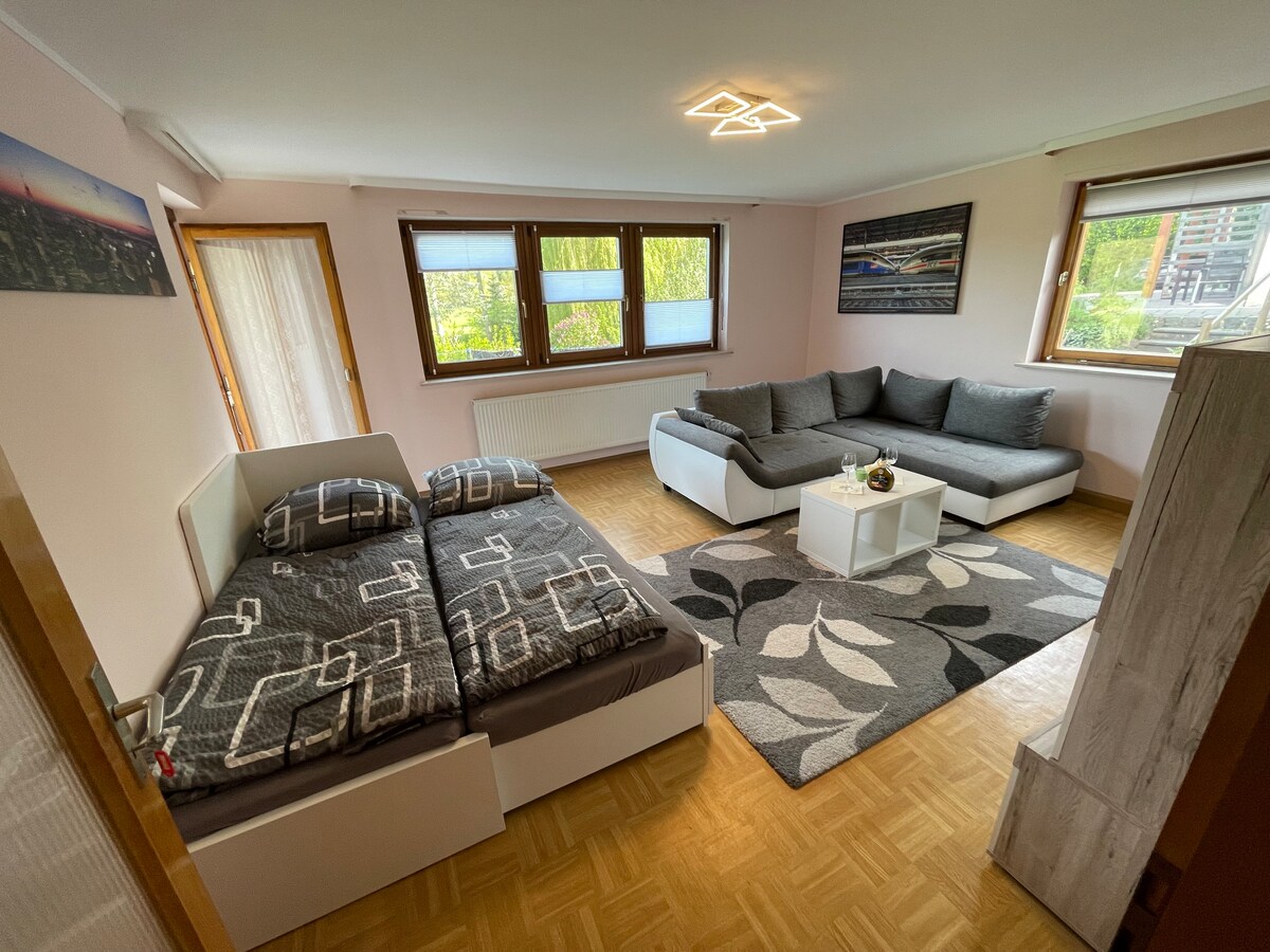 Die Unterkunft ist sehr geräumig, befindet sich in ruhiger Lage umgeben von Hühnern, Schafen, Pferden, Lamas und Alpakas. Ideal zum Wandern und Radfahren, separater Eingang, eigene Terrasse, Parkplatz bzw. Carport, gemütlicher kleiner Wellnessbereich, Autobahn in 7 km erreichbar, Freizeitmöglichkeiten in der Nähe. Funpark, Schwimmbad, Restaurants, Einkaufsmöglichkeiten in wenigen Auto- Minuten erreichbar.